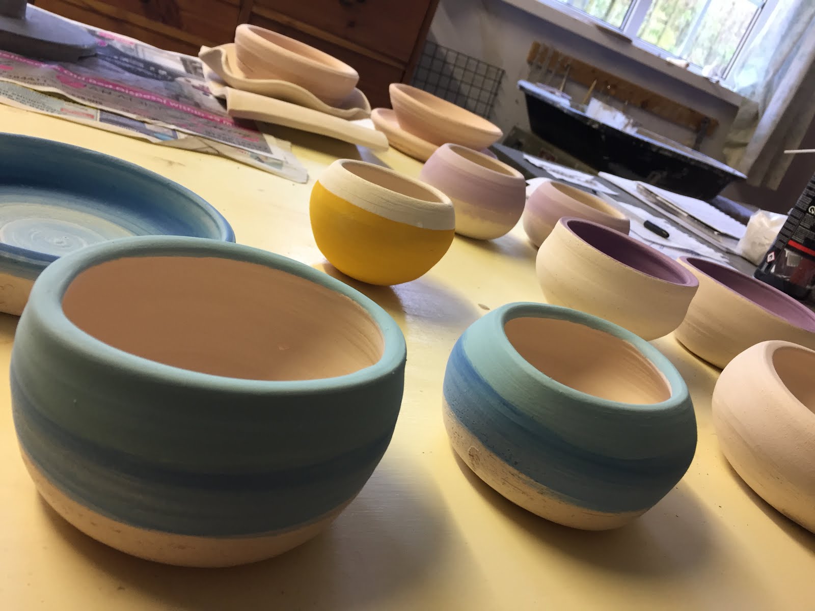 Got a fairly busy weekend ahead, but hopefully I´ll have some more time in the studio so I can get the transparent glaze on the biscuit-fired pieces and also start working on a new multi-media piece of wall art that Simon and I are collaborating on. It´ll be nice to do some handbuilding again 😊.